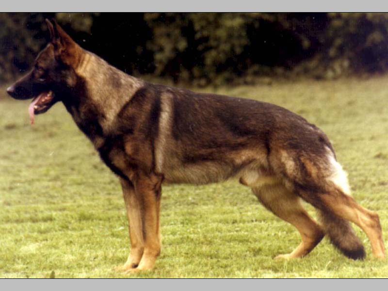 Medium sized, strength and substantial male, whose upper arm would have to lie somewhat diagonally. The croup is somewhat short. Good Brisket in proportion. Still good gait, whereby the supply should be more effective. With safe nature courage and combat impulse are praise worth.