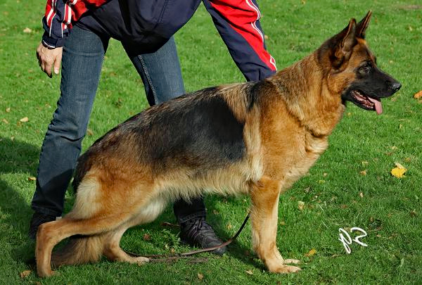 Large, medium strong, substantial, correct body proportions, excellent building harmony, powerful, expressive head, very good top and bottom line, withers, long, properly positioned croup, balanced chest proportions. Straight front, very good angulation of the forehand, stressed angulation of the hindquarters, powerful, far Gangwerk with very good equilibrium position. Nature surely, TSB pronounced, lets out.