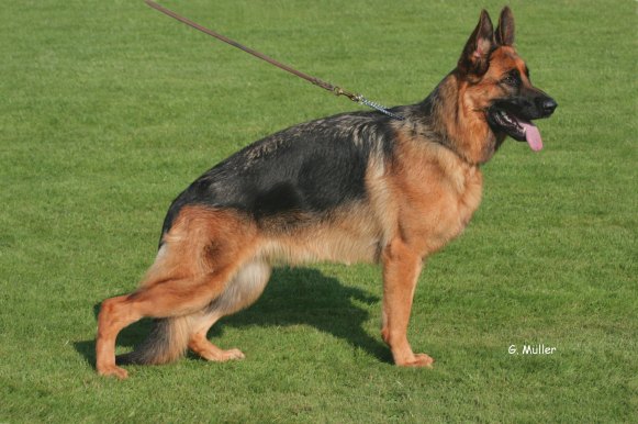 Overall assessment: Big, strong, substantial, correct building conditions, drying and firmly, very expressive, high withers, firm back, good length and situation of the croup. Very good bending of the pre and rear, straight front, balanced chest proportions, straight movement, is very expansive strong gait. Safe nature, TSB pronounced. Temperament, nerves, gun sureness, drives, self confidence, loadability (TSB) Temperament: firm Alert, Attentive: present Nerves: firm Impartiality: present Gun...Read more